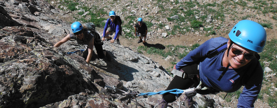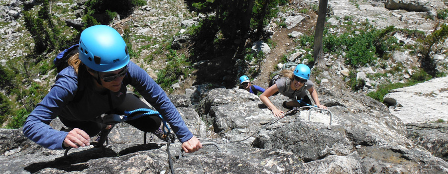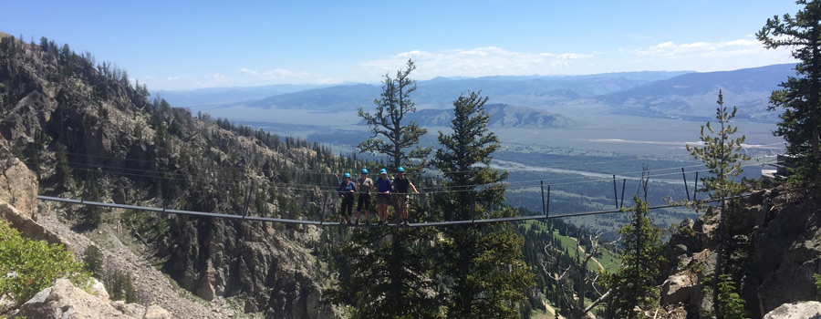 Hi, I am Julie Calder from the Marketing team at Jackson Hole Resort Lodging. As a continuation of our series showcasing activities to do while on vacation in Jackson Hole, I would like to introduce the Via Ferrata. This is a brand new activity at Jackson Hole Mountain Resort. Via Ferrata means “iron way” in Italian and provides assisted climbing with a knowledgeable guide at the Jackson Hole Mountain Resort. Ths Via Ferrata is one of only 3 in the USA and the only Via Ferrata on public US lands. The owners of Jackson Hole Mountain Resort had an incredible vision to bring this to us. It is a great way to be on the mountain and experience climbing in a new way.