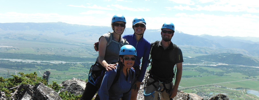 The Via Ferrata offers assisted climbing with cables, steel hand and foot holds, iron ladders and suspended bridges on routes located adjacent to the top of the Bridger Gondola. Climbers secure themselves to the cable via a harness and carabiners before ascending exposed areas. While less experience climbers can use all of the hand and foot holds, the more experienced can use the rock and ascend the same routes. This is a guided experience and the guides are great at helping each participant choose the right routes and pace for their adventure.